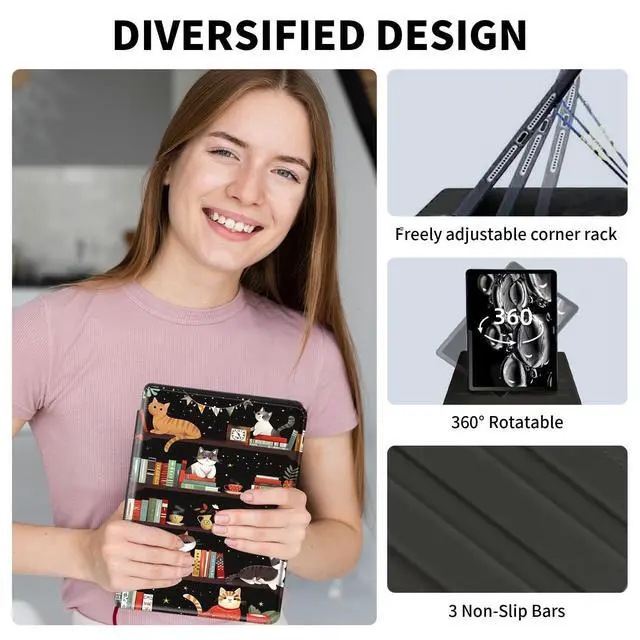 Adjustable Angle: 360 degree rotation stand tablet case can rotate both Horizontal and vertical modes flexibly, built-in 3 anti-slip strips support adjustable angle for video watching, chatting and easy typing ^^