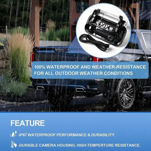 Premium Rear-View Backup Camera: Engineered for real-world reliability compatible with 1224V DC vehicle power systems. Includes an 8-meter shielded RCA video cable, fully protected by durable PA plastic bellows that resist corrosion from engine oil, coolant, acid, and other harsh under-vehicle fluids. Built for continuous, trouble-free operation. With this wired universal backup camera, youll get a crisp, stable, and distraction-free rear view even in rain, fog, low light, or tight parking spots.