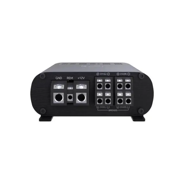 The link 300.4 mini is a compact 300 Watt 4-channel amplifier, measuring only 6.4 x 4.5 x 1.65, making it ideal for tight spaces. ^^ It features bridgeable output, delivering up to 150 watts at 4 ohms BTL, perfect for driving components and a subwoofer simultaneously. ^^ Equipped with built-in summing and level trim adjustment, this amplifier can manage factory audio systems without requiring additional processors. ^^ The link 300.4 mini is compatible with OEM start/stop systems and includes features like auto turn-on and differential balanced inputs for ease of use.
