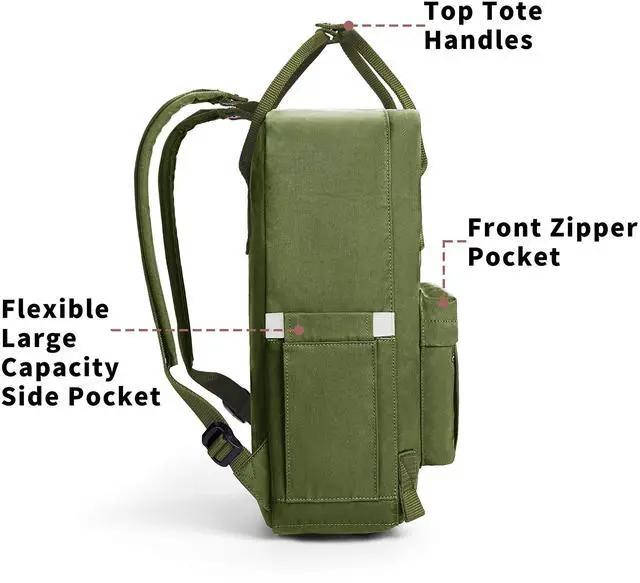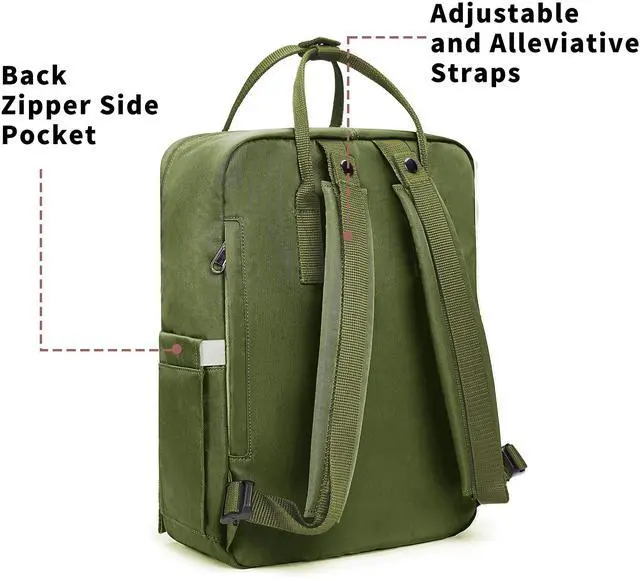 KALIDI Casual Laptop Backpack 15 Inches Classic Camping Rucksack Travel Outdoor Square Daypack College Hiking Gym Bag, Army Green