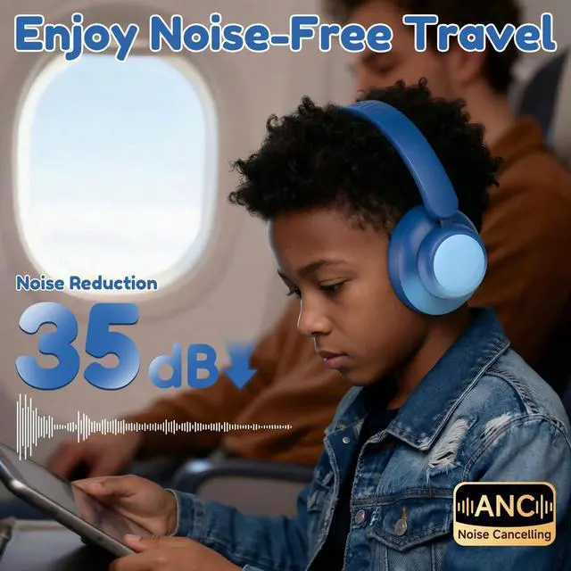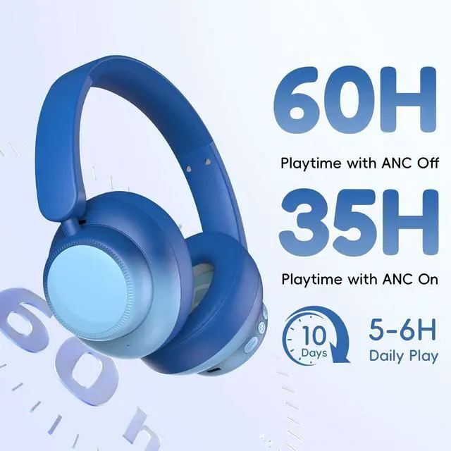 ^^ [Non-Stop Fun]: Enjoy up to 60 hours (ANC off) or 35 hours (ANC on) with advanced Bluetooth 6.0 for stable, efficient connection. Includes a USB-C and a 3.5 mm audio cablekeep listening our kids wireless headphones even when the battery runs out. No more battery anxiety, ever! ^^ [Built Tough, Worn