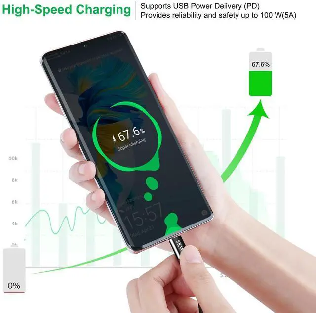 • Fast Charging: Supporting up to 100W power transmission, your device charging speed will be increased several times, saving you valuable time