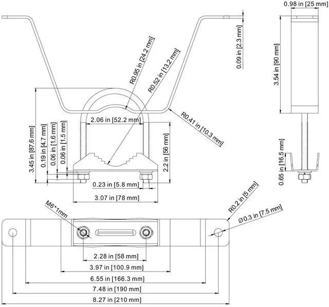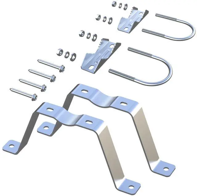 Packing list: 1. Main mounting bracket 2pcs (Stainless Steel) 2. Clamp V Jaw Bracket 2pcsStainless Steel3. U-Bolt 2pcs Stainless Steel4. Nuts 4pcs Stainless Steel5. Spring washers 4pcs Stainless Steel6. Plain washers 4pcs Stainless Steel7. Self tapping screw 4pcs Stainless Steel