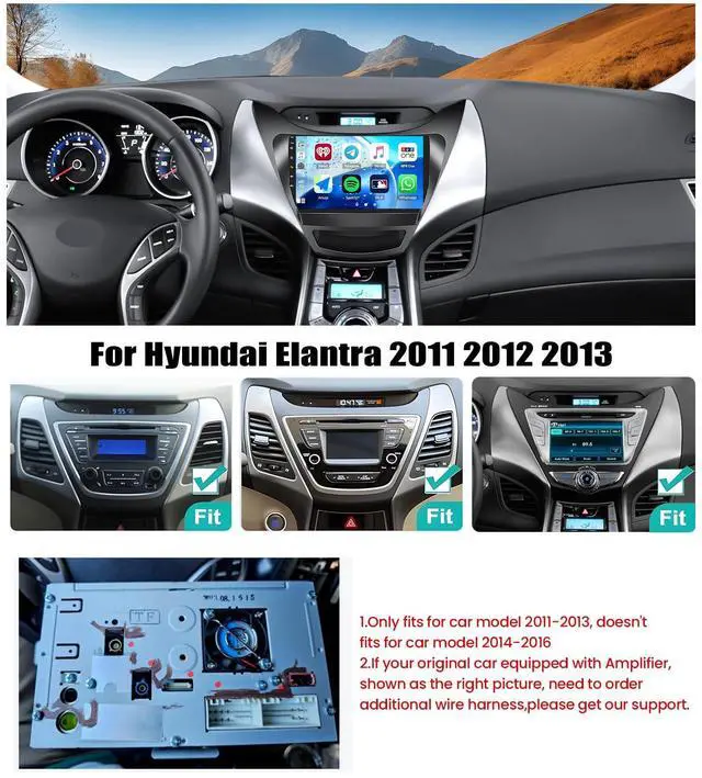models: for Hyundai Elantra 2011 2012 2013, plug and play ^^ 32EQ Audio Adjustment A variety of mainstream sound effects designed for car scenes create the ultimate hearing experience such as 3D optimized, Panorama, HiFi scene, etc, to make up for the lack of speakers in the original car and get better lossless sound quality. Various popular sound effects can be adjusted at will to enjoy the perfect car audio quality ^^ Bluetooth 5.0 & FM/RDS RadioThis Hyundai Elantra car radioupgraded with Bluetooth 5.0 and features stable signal and high quality phone call sound while you are driving. You can listen to news, music, weather forecast, traffic information. Support radio stations FM/RDS, add fun to the boring car journey ^^ WiFi, GPS NavigationConnect to WiFi, you can download various applications on the Hyundai Elantra upgrade radio. You can listen to online music and watch "YouTube" videos. It is as convenient as a large smart phone, adding fun to the journey. Support GPS satellite positioning, you can download offline navigation directly from the Play Store. After connecting to WiFi, the online map can also be used perfectly ^^ Wireless Carplay, Android Auto & Mirror LinkThe android radio can synchronize the phonebook, email, notification, map navigation APP, music APP on the phone to the radio, and support call mobile phone voice assistant for voice control.