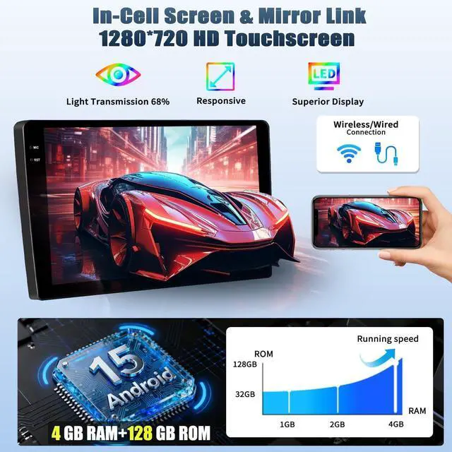 4G+128G Android 15 Radio & Applicable ModelsThis upgraded Android radio features a high-definition screen, 4-core chips, and 4G+128GB of large memory. Built-in Bluetooth 5.0, faster and more stable, providing a smoother user experience. Head unit for jeep renegade with 9 Inch INCELL touch screen of 1280*720 resolution, Applicable