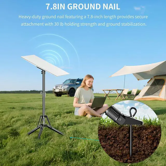 WIND-RESISTANT DESIGN: Heavy duty tripod mount engineered for Starlink Gen 3 with powder coated black finish, integrated ground nail anchoring system, and weather protection rated for 30mph wind resistance, ideal for RV travel and outdoor camping ^^