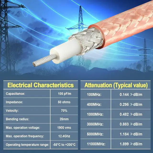 RF double shielded RG400 coax cable, 40 feet ^^ Good conductivity and signal transmission ^^ Superior shielding performance ^^ High-temperature resistance ^^ Max.
