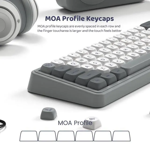 MOA profile keycap setThe MOA key caps, the curved design of the keycap is more rounded and the typing is more comfortable. First launch, This is the first opportunity to try something new. ^^ Thick PBT KeycapsThe dagaladoo keyboard keycaps delivers in quality with PBT keycaps whose legends will never wear away. Compared to ABS material, PBT keys is feel textures better and can be used for a longer time. It's dry and not easy to get oily. ^^ dye sublimation processThe keycap pattern is made by a complex thermal sublimation technology to ensure that the pattern does not fade after long-term use and remains clear and bright.
