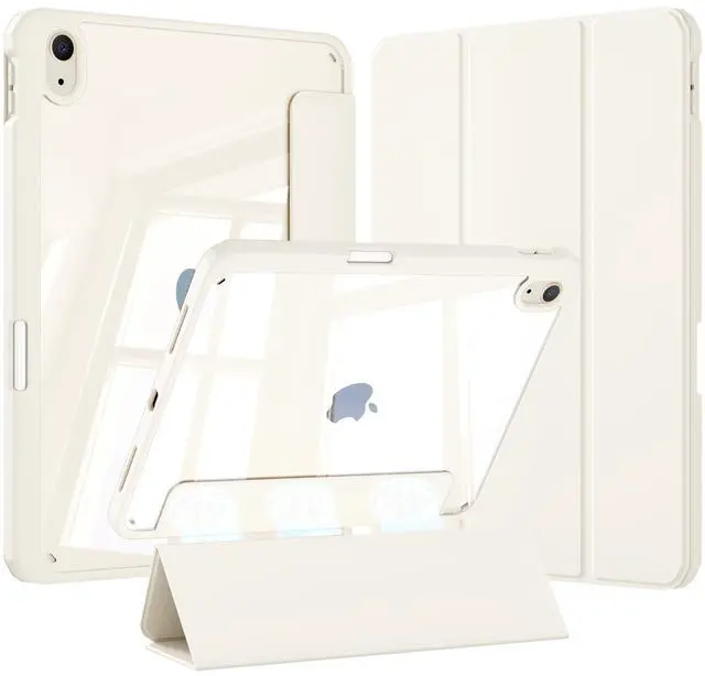 SQQSOOZ Case for iPad Air 11 Inch M4/M3/M2 2026/2025/2024, iPad Air 5th/4th Gen 10.9 Inch Case 2022/2020 with Pencil Holder, Magnetic Detachable of Clear Back Cover, Slim & Tri-Fold Cover, Cream White