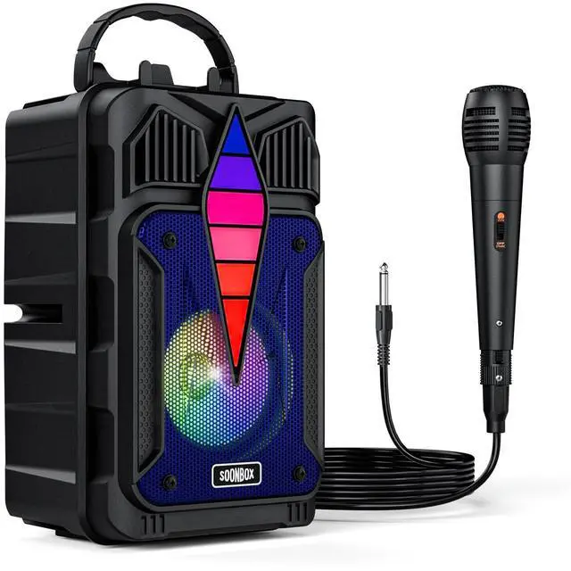 Keep in mind that the actual playtime can vary depending on volume level, audio content, and usage. ^^ 3D HD Stereo SoundEnjoy the amazing music scene in 360 degrees and experience unparalleled sound quality. 360 surround highdefinition sound, the speaker delivers immersive sound with rich bass, without any noticeable distortion even at maximum yolume. Create an immersive stereo experience and fill any room with powerful sound. ^^ Multi-function SpeakerBuilt-in the latest Bluetooth 5.0 chip, providing more stable and long-distance transmission, ensuring uninterrupted party. This adult and children's machine also supports Micro TF card, Flash USB and AUX connection, and is compatible with Android phones, iPhones, iPads, TVs and PCs.