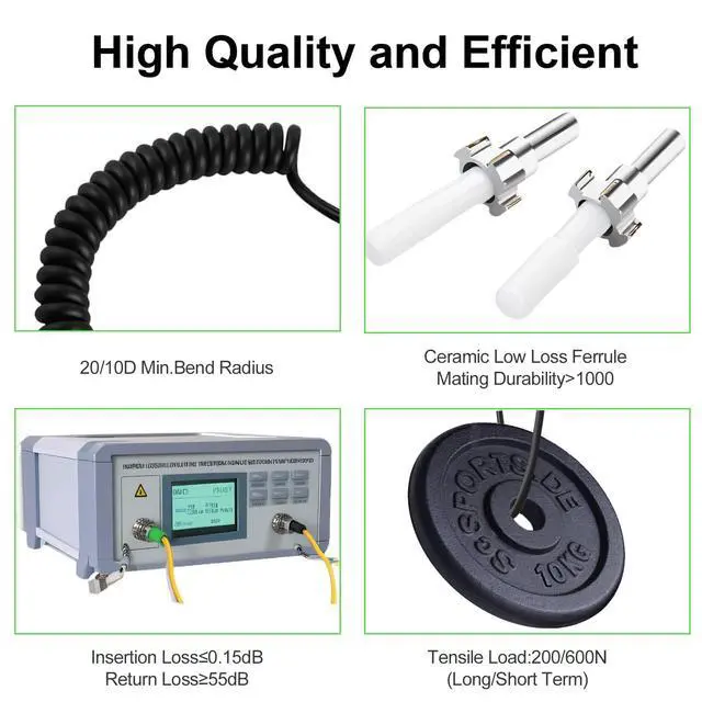 • Premium Fiber Optic Cable: Our LC to LC duplex internet fibre optic cable is enclosed in a 3.0mm black low friction LSZH jacket. Coss section of the central core and its 9/125 micron coating. Reflectivity and insertion loss meet industry standards, Low insertion loss (0.2dB) and high return optical loss (UPC50dB). Compatible with 10GBase-LRM,SFP+,and QSFP+ transceivers for seamless integration into 10-gigabit networks.