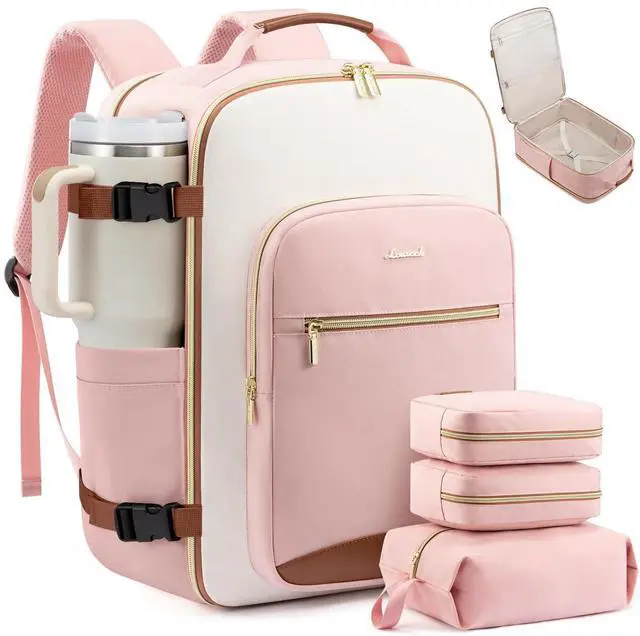 LOVEVOOK 50L Large Travel Backpack for Women, Carry on Backpack Airline Approved, Waterproof Travel Essentials fits 18" Laptop, TSA Personal Item Travels Bag Sports Backpack with 3 Packing Cubes