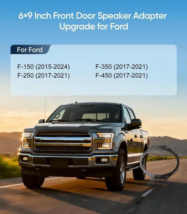 Vehicle Compatibility69 inch front door speaker adapter is specifically engineered for Ford trucks including 2015-2024 F-150, 2017-2021 F-250, 2017-2021 F-350, and 2017-2021 F-450 models, ensuring perfect fitment with factory specifications. ^^ Vibration Damping PerformanceFord door speaker adapter can fill the gap between the aftermarket speakers and the door speaker mounting positions, and effectively reduce noise and resonance, delivering cleaner audio output with enhanced bass response and minimal distortion for superior sound quality. ^^ Easy to InstallationCar Front Rear door speaker adapter kit utilizes existing vehicle mounting points without requiring any cutting or drilling modifications, preserving your factory wiring while providing direct plug-and-play connectivity for time-saving replacement.