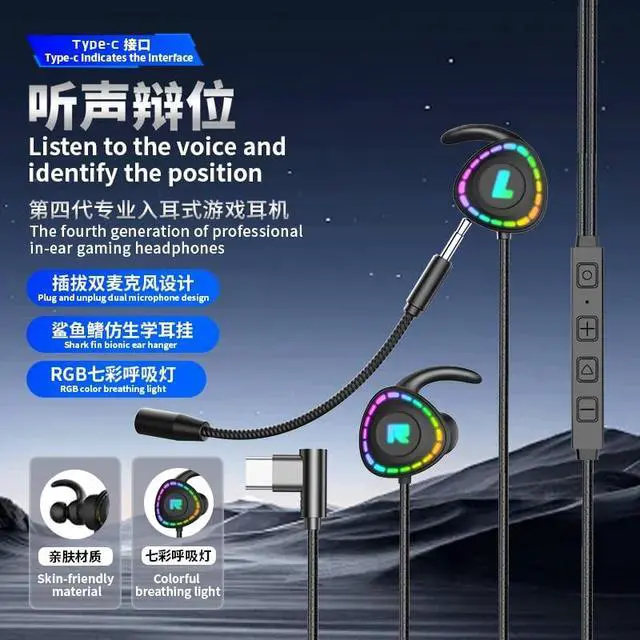 USB Type-C in ear Gaming Earbuds with Mic, Earphones Wired Stereo Bass with Detachable Dual Microphone Noise Cancelling E-Sports HiFi in-Ear Headphones for iPhone 15 serial Mobile Gaming, PS4, Xbox, Nintendo or PCCrystal clear chatRemovable high-sensitivity mic picks up your voice loud and clear or use the built-in inline mic when on the go.