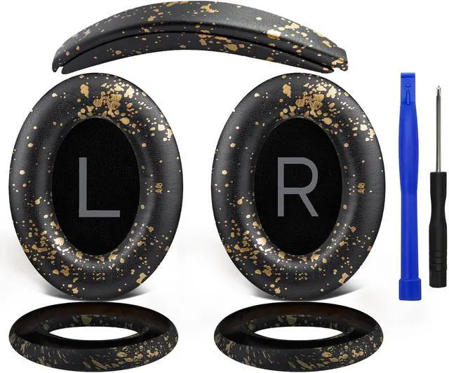 SOULWIT Replacement Kit for Bose QuietComfort 45 (QC45)/Quiet Comfort 35 (QC35, QC35II)/QC SE/QC Wireless Headphones, Ear Pads Cushions + Headband + Silicone Earpads Cover Protector - Black Gold