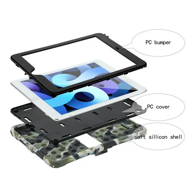 ^^ 3 Layer Design: Three-layer structure of premium shock-absorbing TPU and durable hard polycarbonate provide a perfect protection against accidental drops, scratches, bumps and shock. ^^ Built-in Pencil Holder & Kickstand & Carrying Strap: This shockproof tablet case has a built-in sturdy kickstand. Portable Shoulder Strap allows to carry your iPad in landscape/portrait mode securely in outdoors or hang your iPad. Designed with a pencil holder easily to carry your Apple pencil with your device.