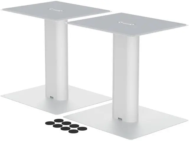 Suptek 9.4 x 8.2" Desktop Speaker Stands Pair for Bookshelf & Desktop Speakers 10" Height Sturdy Base for Studio Monitors, PC, Gaming & Home Audio, White, SDM003LW