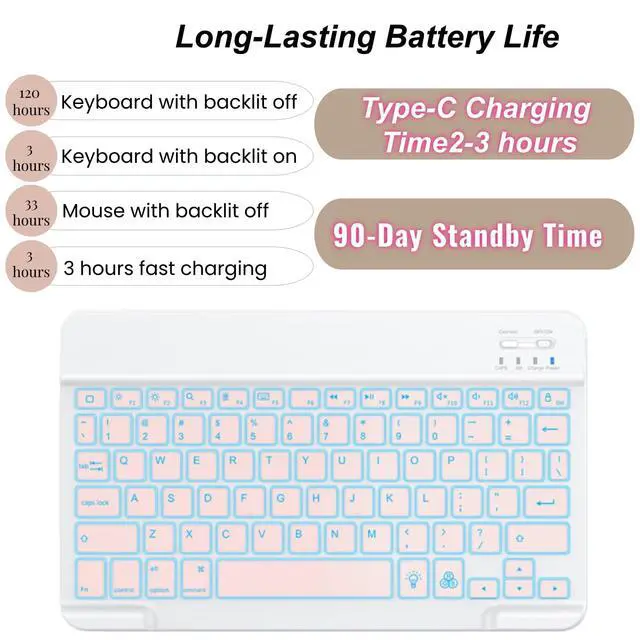 Backlit Keyboard: Case for Samsung Galaxy Tab S10 Lite 5G 10.9" with a detachable magnetic keyboard. It is easy, fast and stable to connect via BT, reconnect immediately when turning it on. With 7 vibrant backlight colors and 3 adjustable brightness levels. engaging yourself in a free and relaxed typing experience in any dim condition.