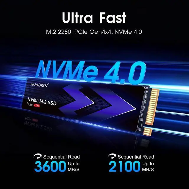 Lightning-Fast NVMe SSD: Huadisk PCIe 4.0 M. 2 NVMe SSD 256GB, deliver 3600MB/s read and 2100MB/s write speeds through advanced 3D NAND technology. Experience instant game loads, seamless gameplay, and massive storage expansion ^^ Universal SSD for