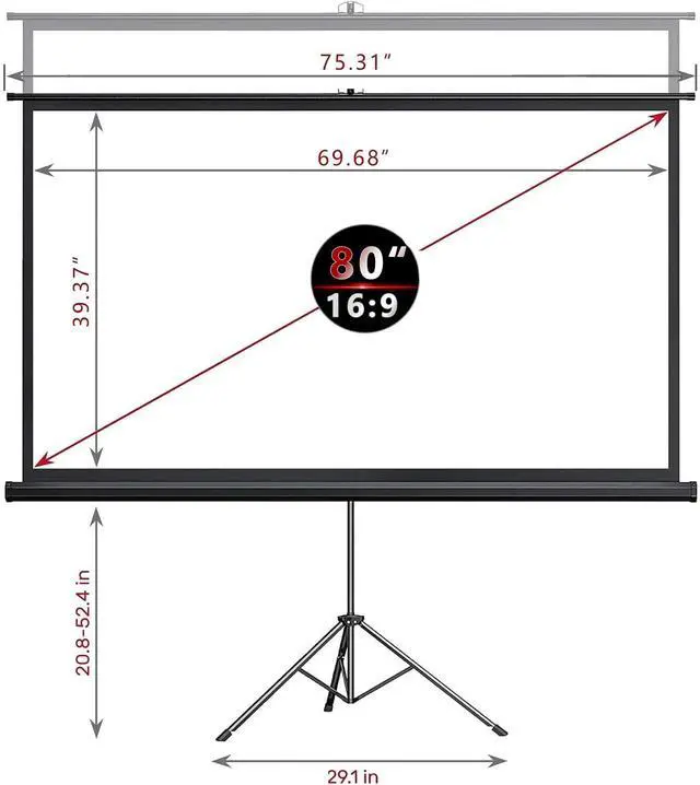 Aoxun 80" Projector Screen with Stand - Set of Pull Up Indoor and Outdoor Portable Free Tripod Screen 80 inch 16:9 HD Projection Screen for Movie or Office Presentation