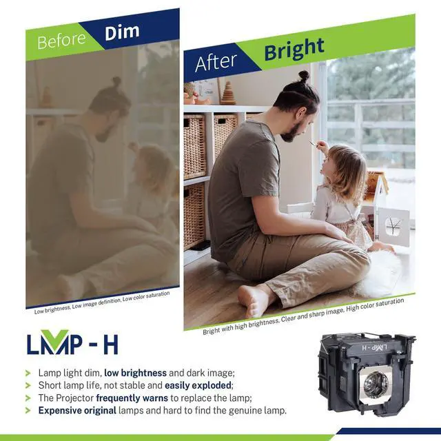 COMPATIBLE MODULES: Epson EB-685W EB-685Wi EB-685WS EB-685WT EB-695Wi EB-695WT EB-695WIE BrightLink 685Wi BrightLink 695Wi PowerLite 680 PowerLite 685W ^^ LMP-H projectors' bulbs are made of the highest quality materials and have the same functions as your original bulbs. They are perfectly matched and compatible with your projector ^^ All projector bulbs are equipped with enclosures instead of bare bulbs. Our bulbs feature an optimized filament design, which helps prevent the machine from overheating or experiencing abnormal temperatures, thereby protecting the bulbs and the projector ^^ When installing a new light bulb, wait for the old bulb in the projector to cool down before replacing it. And you need to be aware of the connector make sure it connected well ^^ giving you great peace of mind. If you have any questions about the order, please feel free to contact our dedicated support team at any time. We will be happy to answer them for you promptly