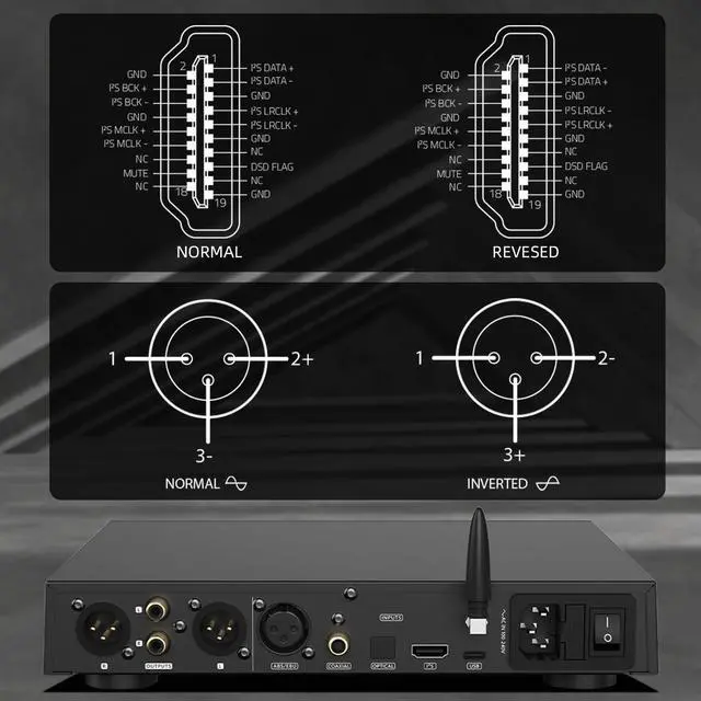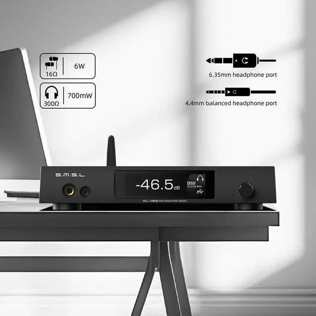 The DL400 adopts a fully balanced design headphone amplifier circuit with 4 ultra-low distortion precision linear feedback circuits (PLFC), with a 16 ohm output power of 6W2 and a 32 ohm output power of 3W2; ^^ It has two headphone ports, providing a 6.35 mm headphone port and a 4.4 mm true balanced headphone port on the front panel, as well as I S input and XLR output; ^^ The all-new third-generation XMOSXU-316 supports PCM playback up to 32bit/768kHz. DSD supports up to DSD512, with USB, fiber optic, coaxial, and 2S support for DSD transmission.