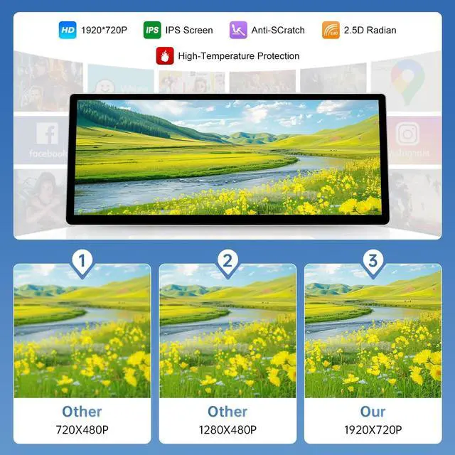 Generation Car Touchscreen: HD 12.3 inch screen with 1920x720 high-definition. The unit is full aluminum body with a narrower bezel. Great screen resolution, colors and viewing anglesexpected from iPS panel. Car display touch screen updates the original screen to a larger screen that is perfectly compatible with the original car and can bring you an excellent visual experience ^^