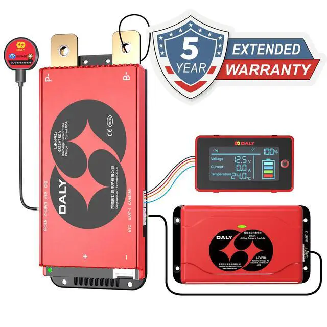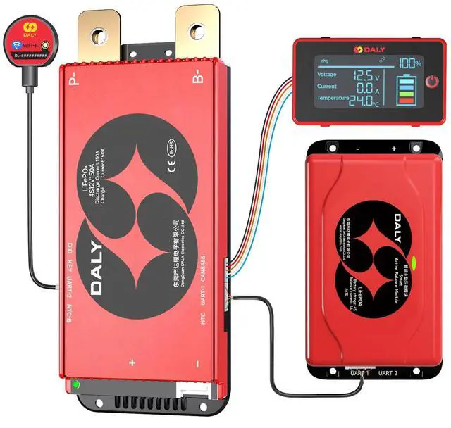 ^^ 2-IN-1 BLUETOOTH/WI-FI DONGLE: For local/remote battery monitoring through Smart BMS mobile app with real-time system alerts and customizable parameters. Whether you're powering an RV/Marine getaway or keeping your portable power station running smoothly, DALY BMS provides the utmost confidence in your power system. ^^ DALY BMS WITH 1A