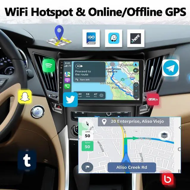 [Note: If your car has factory cameras and amplifiers, this radio may not compatible with your vehicle] For Sonata radio with powerful Android 13 system, and memory of 2GB RAM+32GB ROM, you can enjoy a smooth and responsive user experience. AHD backup camera and microphone are Included ^^ Wireless Apple Carplay & Android Auto For Sonata touchsceen radio with built-in wireless Apple CarPlay and Android Auto function [use Zlink App] with wireless/wired connection via Bluetooth and WiFi or USB cable, allowing you to access your favorite apps, navigate with ease, make hands-free calls, and enjoy music, all from the comfort of your car. Upgrade your driving experience with our for Suzuki Android radio ^^ GPS Navigation & WiFi For Hyundai Sonata 2011 radio, the 9 inch touch screen Android car stereo with 2G RAM, 64G ROM larger storage for downloading and installing more Apps when you switch on the wifi. Support online and offline map, with the WiFi turn on, the 9 inch head unit compatible with Google map and other navigation App, you can get real-time traffic information ^^ Built-in Bluetooth & FM Radio, Mirror Link For Hyundai Sonata 2010-2015 car stereo radio with built-in Bluetooth and mic for hands-free calling, clearly pick up your phone call sound and no distraction.