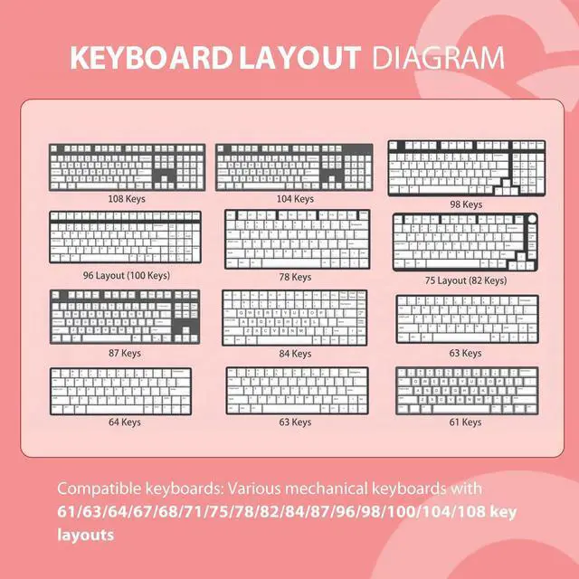 Maximum Flexibility: This comprehensive set includes 155 keys, offering extensive support for a wide variety of layouts including 60%, 65%, 75%, TKL, 100%, and more. It provides all the essential keys, modifiers, and novelty accents for fully customized builds. ^^ Cherry Profile for