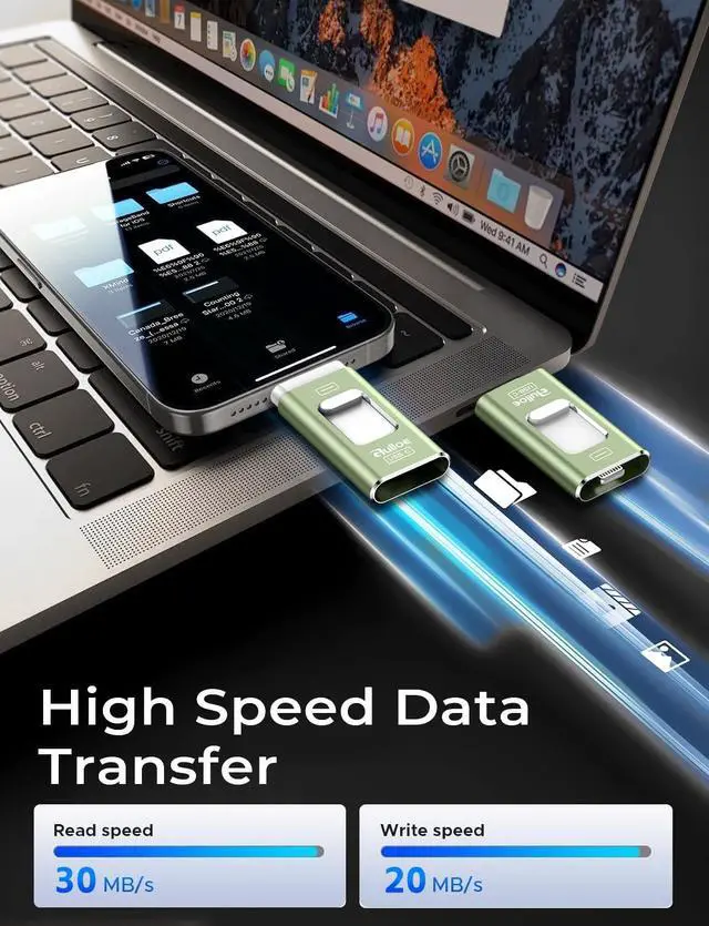 • Blazing Fast Transfers AnywhereEquipped with upgraded high-speed chips, this portable phone external storage flash drive lets you transfer massive files in secondsno WiFi, no data cables needed. Save time when sharing photos or moving large video projects, whether youre traveling, working, or creating content.