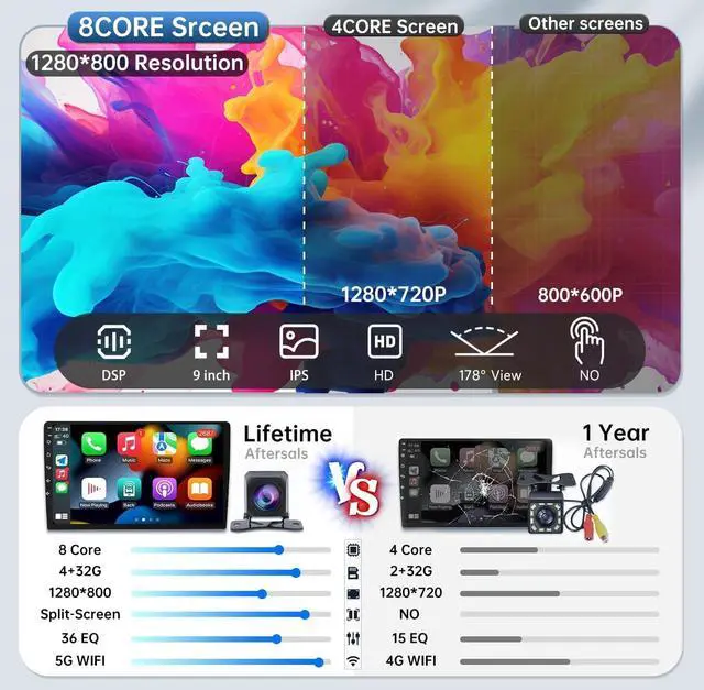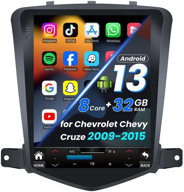 [ Applicable Models ] The radio replacement is specifically designed for Chevrolet Chevy Cruze 2009 2010 2011 2012 2013 2014 2015. We offer a complete range of accessories and detailed instructions for use. No modifications needed, installation is a breeze! Unsure if its compatible? Contact our expert technical team, ready to assist you within 24 hours ^^ [ Android 13 & 1280*800 Touchscreen & Split Screen ] The Cruze radio runs the latest Android 13 with 8 Core CPU, 2GB RAM 32GB ROM to ensure lightning-fast load times, efficient multitasking and plenty of storage.