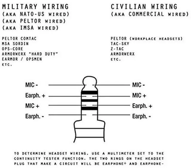 Plug-in adapter easily converts NATO / Military wiring to Commercial / Civilian wiring and vice versa - Connect your Comtac, MSA Sordin, TCI Hi-threat Liberator, etc. headset to a civilian PTT or mobile phone, or connect a Civilian headset to a military PTT - Standard U-174 / U-93 / Nexus TP-120 / 1/4" plug ends - 8" long - Pocket clip - Made by ArmorMason (a division of The Mercenary Company)