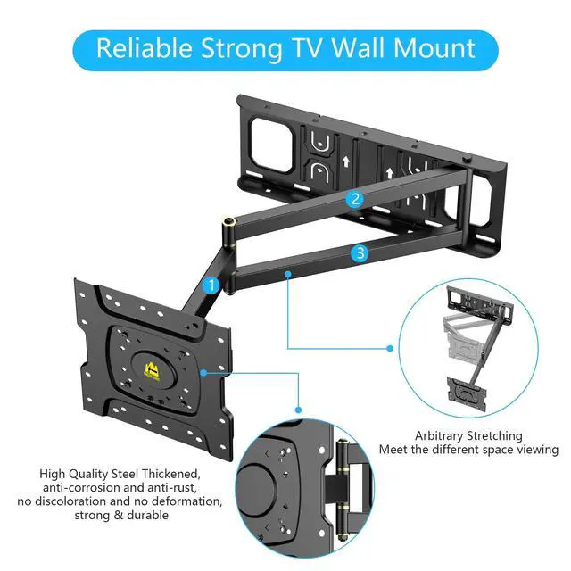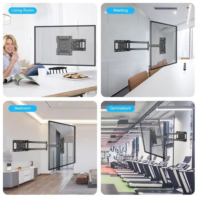 Wall Mount TV Bracket: Equipped with 25.6 long extention arm, imagine your tv is mounted in your living room, but now you can watch your tv even in another room as this tv mount could extend and turn side to side. It's the perfect long arm tv wall mount for your family.