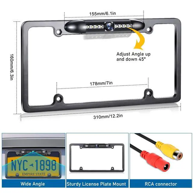 Quality Shielded Cable: The 26ft copper shielded RCA Video cable will supply a more stable signal. The backup cam fit for 12-24V Pickup Car Truck RV SUV ^^ The Camera modified NTSC mode, CVBS signal. If you want to switch to AHD mode, you need make sure your car radio support AHD mode and set correct. Please choose the right mode, or the image will black or white. Please check your license plate size before buy, thank you