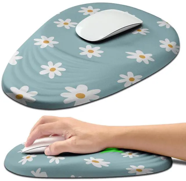 Hokafenle Ergonomic Mouse Pad Wrist Support with Stepped-Wedge Design, Wrist Rest Pain Relief Mousepad Filled with Memory Foam, Carpal Tunnel Mousepad for Wireless Mouse(12x8 inch, Little Daisy)
