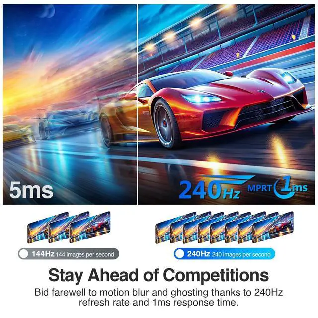 Curved Gaming Monitor: Designed for competitive gamers and immersive entertainment, the monitor delivers ultra-smooth performance with an extreme 240Hz refresh rate (via DP 1.4 ) and 1ms MPRT response time. This gaming monitor dramatically reduces motion blur, ghosting, and input lag, giving you a decisive edge in fast-paced FPS, racing, and action games.