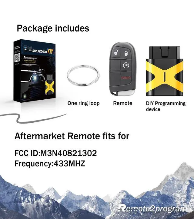 FCC: M3N4082130 2and 2011-2015 Joureny/2014-2018 Durango ^^ ProgrammingThis kit supports self-programming. You can download the APP at home and complete the programming yourself ^^ Easy ReplacementIn minutes according to the User's guide manual, avoid spending more money and save your time by not having to make any appointment ^^ QualityEach car key replacement comes complete with batteries and has been pre-tested to ensure quality and functionality. We'll be responsible for dead batteries due to long distance transportation ^^ PackageThe package contains 1x remote key. After you get the product, please carefully check whether the key is suitable for you car model