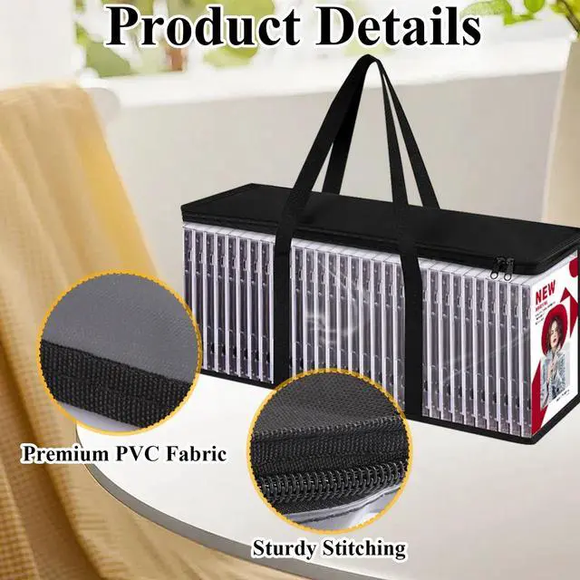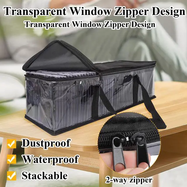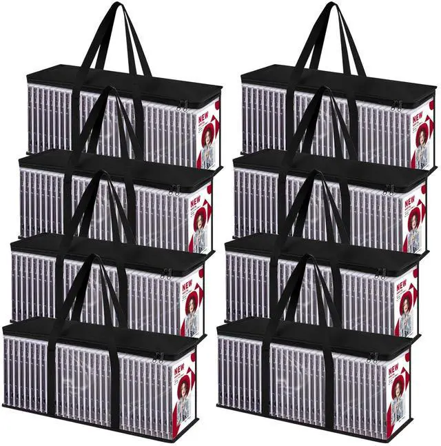 QTLCOHD DVD Storage Bags (Set of 8) Clear PVC Media Holder Case with Handles for DVDs/CDs/VHS Box/Blu Ray Disc/Movie Cases/Video Games Discs - Each Bag Holds up to 40 DVDsFeatures- Each dvd storage case ( 23.62 x 5.91 x 8.66 Inch) holds 40 discs (320 total), perfect for video game storage, movie storage bags, and vhs storage bags. - Secure zippers on dvd storage organizers keep discs dust-free, while double-stitched handles on dvd holder ensure easy transport. - Compact, space-saving, ideal for home/office to tidy your media collection.
