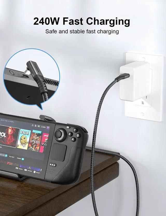 Innovative 90 Right Angle Design 90 degree thunderbolt cable prioritizes your comfort, curating an effortless connective experience with its user-friendly 90 design. Right angle thunderbolt cable avoid bending of the cable during use and protect the interface of the devices. Perfect for laptop and game consoles like Switch, Steam deck. ^^ 240W PD 3.1 Fast ChargingXAOSUN thunderbolt 4 cable 240W is lastest PD 3.1 charging technology, which is by far the fastest charging technology in the world. Backward compatible with lower power requirements like 180W/140W/100W/60W and below. In the next 5 to 10 years, this usb c fast charging thunderbolt cable can fully meet the needs of fast charging.