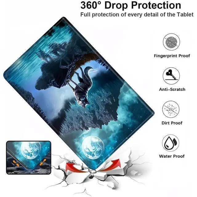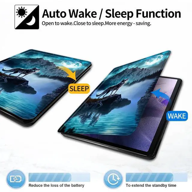 Easy access to all features and controls. -- Built in PU leather, Inner shock absorbing TPU & front and back cover protect your tablet from scratches, dirt and grime etc. --Allows setting multiple horizontal standing angles for viewing, No angle restrictions. --Lightweight table case fully protects your device without adding extra bulky.