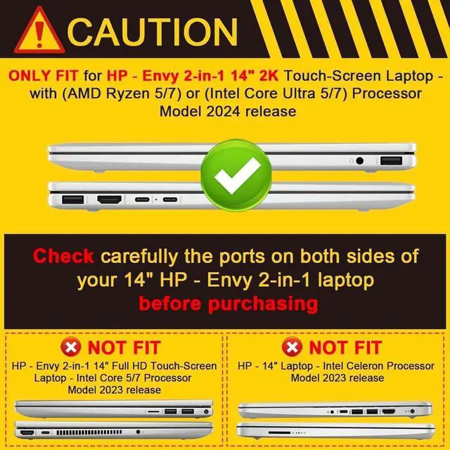 Designed for HP-Envy 2-in-1 14-inch 2K touch screen laptops with either an (AMD Ryzen 5/7) or (Intel Core Ultra 5/7) 2024 processor, please check the USB port on the side of the computer to make sure you purchase it as shown in Figure 2. ^^ Fully functional, 360