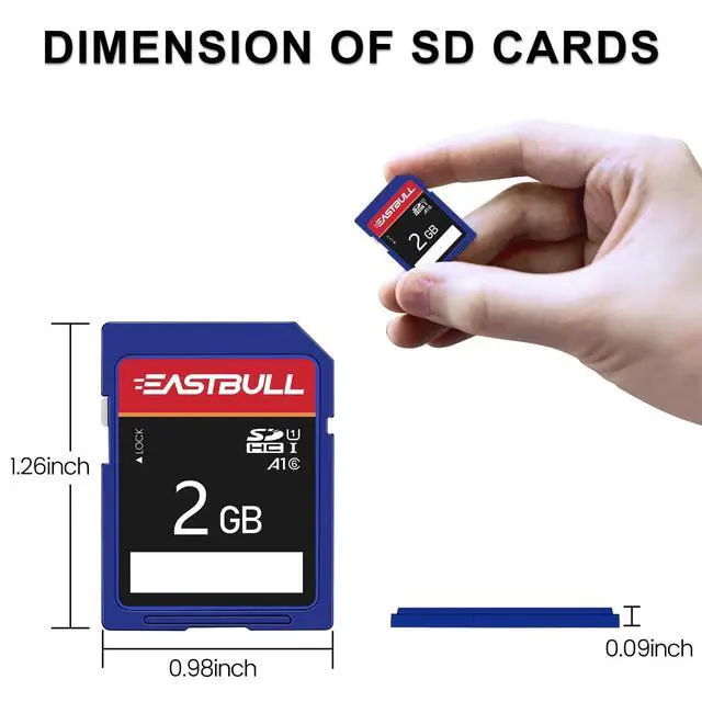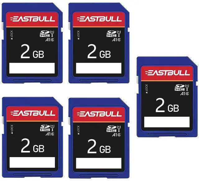 STRICTLY QUALITY CONTROL - EASTBULL 5-pack of SD cards 2GB are made of a good quality A+ chip and double tested before shipping, which has a faster and more stable performance to always keep your files and photos safe ^^ TRANSFER FASTLY - Read speed up to 30MB/s, The 2 GB class 10 SD card is UHS-I, U1, Class 6, and 15MB/s of write speed ( Actual performance may vary based on device, interface, usage conditions, and other reasons ). Perfect for Full HD video recording & display ^^ WIDE COMPATIBILITY - The SDHC memory card 2GB is not only compatible with dashcams, tablets, and laptops, but also security cameras, 3D printers, GoPro, trail cameras, or backup more full HD images, videos, files, music, and so on ^^ DURABLE & STABLE SD CARDS - Anti-static and resistant to breakage.