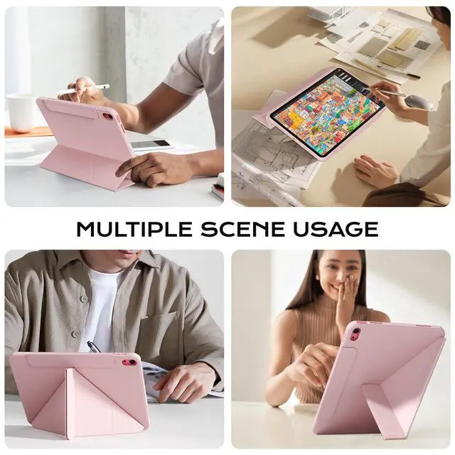 (Note: Pencil is not included in the package) ^^ MAGENETIC CLEAR HARD PC BACK SHELLThe back shell of the Clear iPad Case is made of transparent hard PC material, which provides excellent protection and can perfectly display the original appearance of your 11inch iPad A16 11th Gen/ 10.9 inch iPad 10th. (Please tear off the protective film on both sides of the clear case before use). The round magnet can be attached to the protective case or any other object with a magnet. ^^ HIGH QUALITY MATERIALS & PRECISE CUTOUTSThe outside of the cover is made of high quality PU leather and flexible soft tpu, the inside is made of soft microfiber lining, which can effectively prevent screen scratches. It is precision machined to accurately match all keys and openings. So you can easily access all the controls and functions, such as touch ID, camera, speakers, ports and buttons. ^^ STABLE TRIFOLD STAND & Y STANDThis 11" iPad (A16) 11 Gen Case/ 10.9" iPad 10th Gen Case can be adjusted to a stable trifold stand, you can watch videos at a 65 angle and type at a 30 angle.