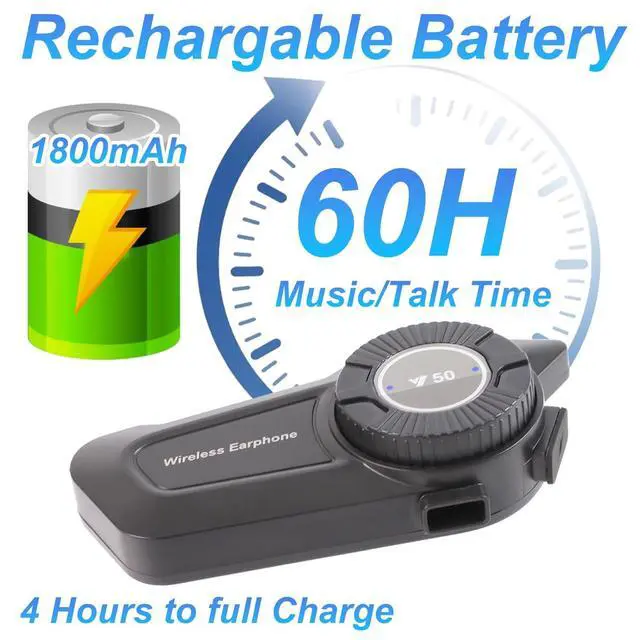Large Capacity Battery & Fast ChargingPowered by a rechargeable 1800mAh battery, it delivers up to 60 hours of continuous music playback on a full charge. It need 4 hours to full charge. ^^ Round Wheel DesignThe helmet headset easily control to play/ pause music by press the button, Quick left/right rotate to switch previous/next song, rotate and hold to adjust volume. ^^ IPX6 Waterproof & Durable DesignBuilt to withstand rain, sweat, and dust. Ride worry-free in any weatherthis headset wont fail you on long trips or rainy days! ^^ Voice Assistant & Glove-Friendly Controls- Easily activate Siri/Google Assistant with a button press.