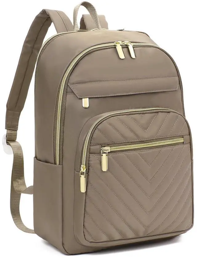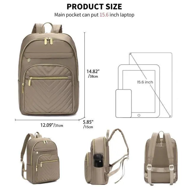 Size: Computer bag designed to be spacious and lightweight, providing you with a more comfortable carrying experience. 12.09" L x 5.85" W x 14.82" H / (31cm x15cm x 38cm), weights only 1.01 lbs. Large capacity offers dedicated compartments for laptop, iPad, A4 documents, wallet, clothing, power bank, and other essentials. Stylish yet practical, this travel backpack holds everything you need on the go ^^ High Quality MaterialLaptop backpack is made of premium quilted, high-quality hardware and zippers assure wonderful visual and usage effect, ensures lasting durability and resilience to daily wear. Features a classic V-shaped embroidery thread, highlight your personality ^^