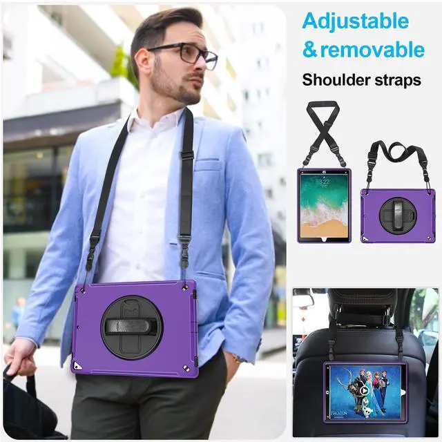 SHOULDER STRAP: This hand strap is convenient for you to hold when you use this ipad for show and tell. You can carry tablet with shoulder strap and even hang it on your car seat during hiking, traveling other outdoor activities. ^^ BUILT-IN APPLE PENCIL HOLDER +