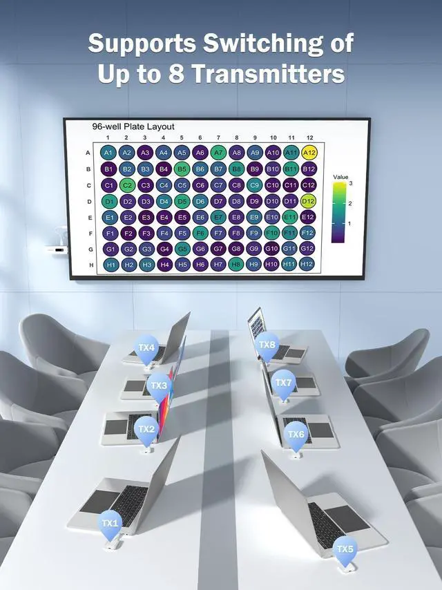 Vs, projectors, LED displays, and other large screens. One HDMI receiver supports up to 8 transmitters (HDMI or USB-C). If you need additional transmitters, they must be purchased separately (HDMI