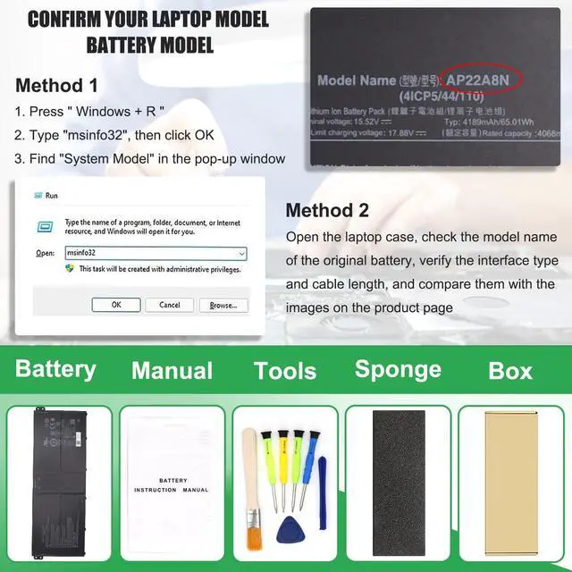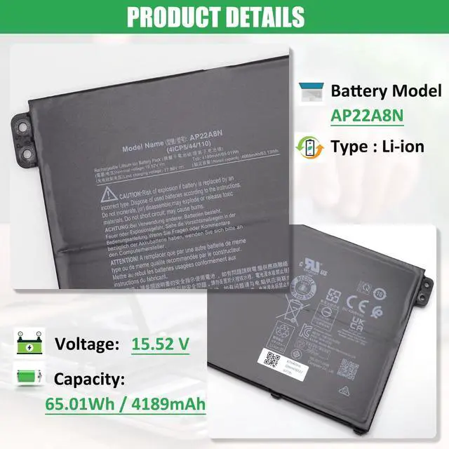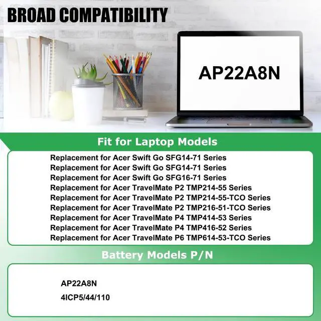 COMPATIBLE PART NUMBER: Battery AP22A8N ^^
