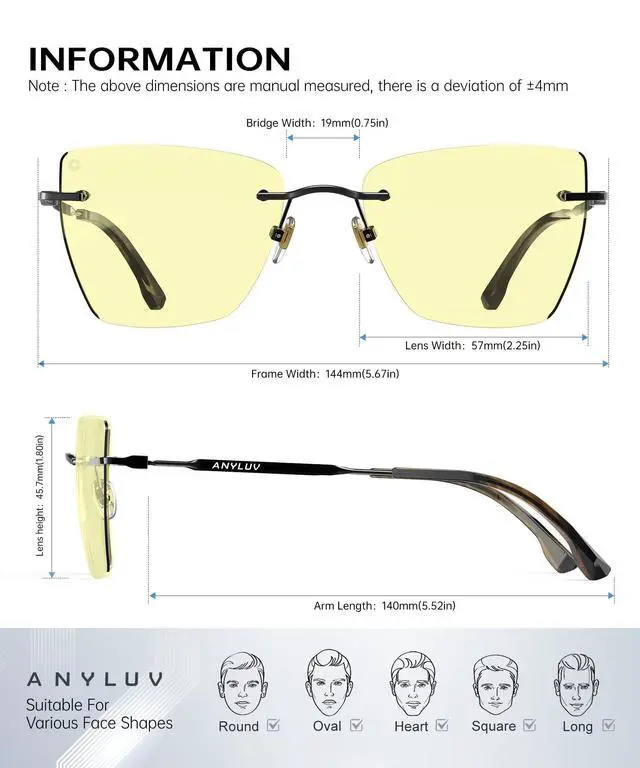 SHIELD YOUR EYES IN STYLE: ANYLUV blue light filtering technology blocks harmful digital rays (380-454nm) while maintaining true-color vision - say goodbye to screen-induced headaches and restless nights! ^^